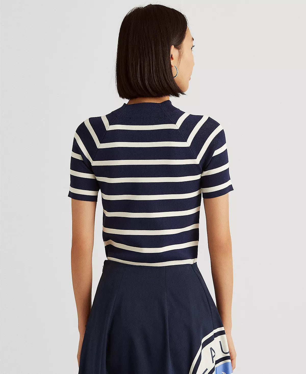 Fique adorável e deslumbrante em seus passeios casuais vestindo o suéter listrado de manga curta Ralph Lauren | Suéter leve com corte slim | Decote falso e mangas curtas raglan | Listras horizontais por toda a peça | Feito para ficar no quadril | Construção pull-on | 57% viscose