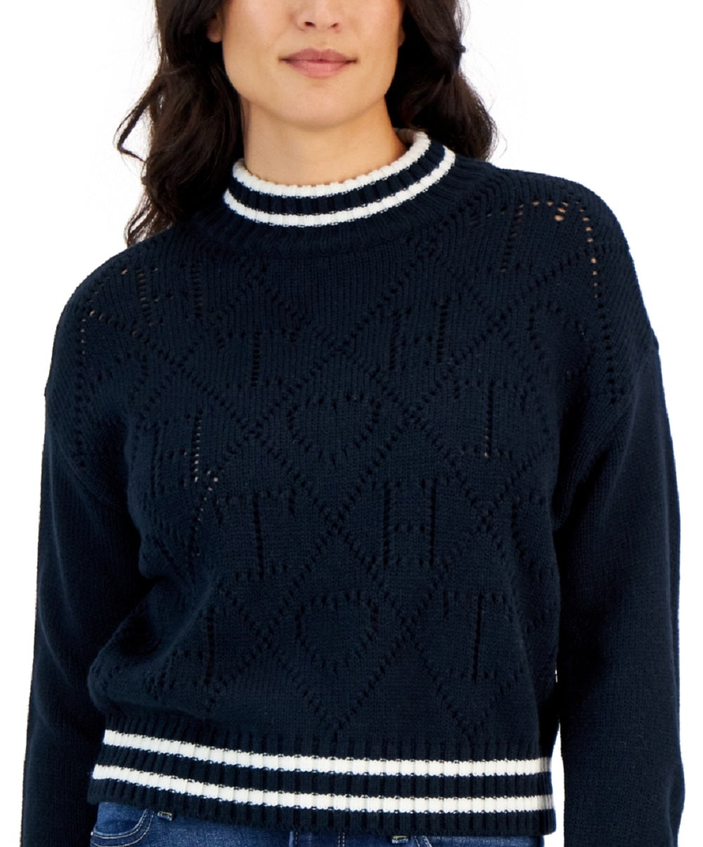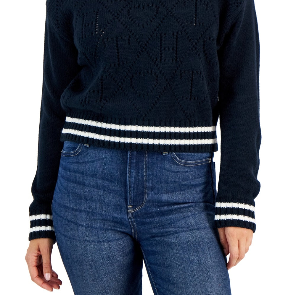 Tommy Hilfiger Suéter Feminino com Logo Argyle e Gola Redonda Azul Tamanho P