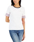 Camiseta Tommy Hilfiger Feminina de Algodão com Manga Listrada, Branca, Tamanho Médio