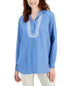 Tommy Hilfiger Blusa Túnica Texturizada Bordada Feminina Azul Tamanho P