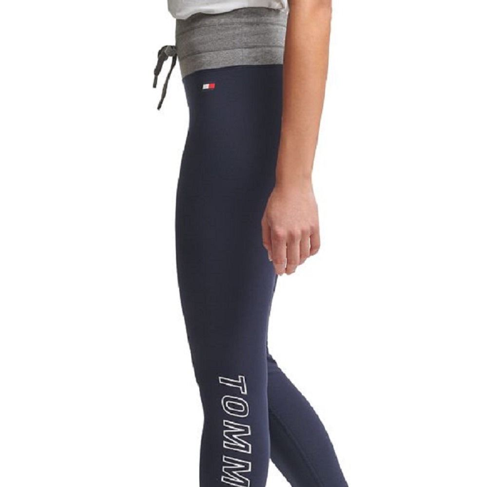 Uma versão elegante da silhueta jogger | estas leggings Tommy Hilfiger apresentam um visual icônico e cintura alta confortável. | Costura interna aprox.; 26-1/2 | Cintura alta | Estilo pull-on; cordão na cintura | Logotipo à esquerda; punhos contrastantes | Algodão/elastano