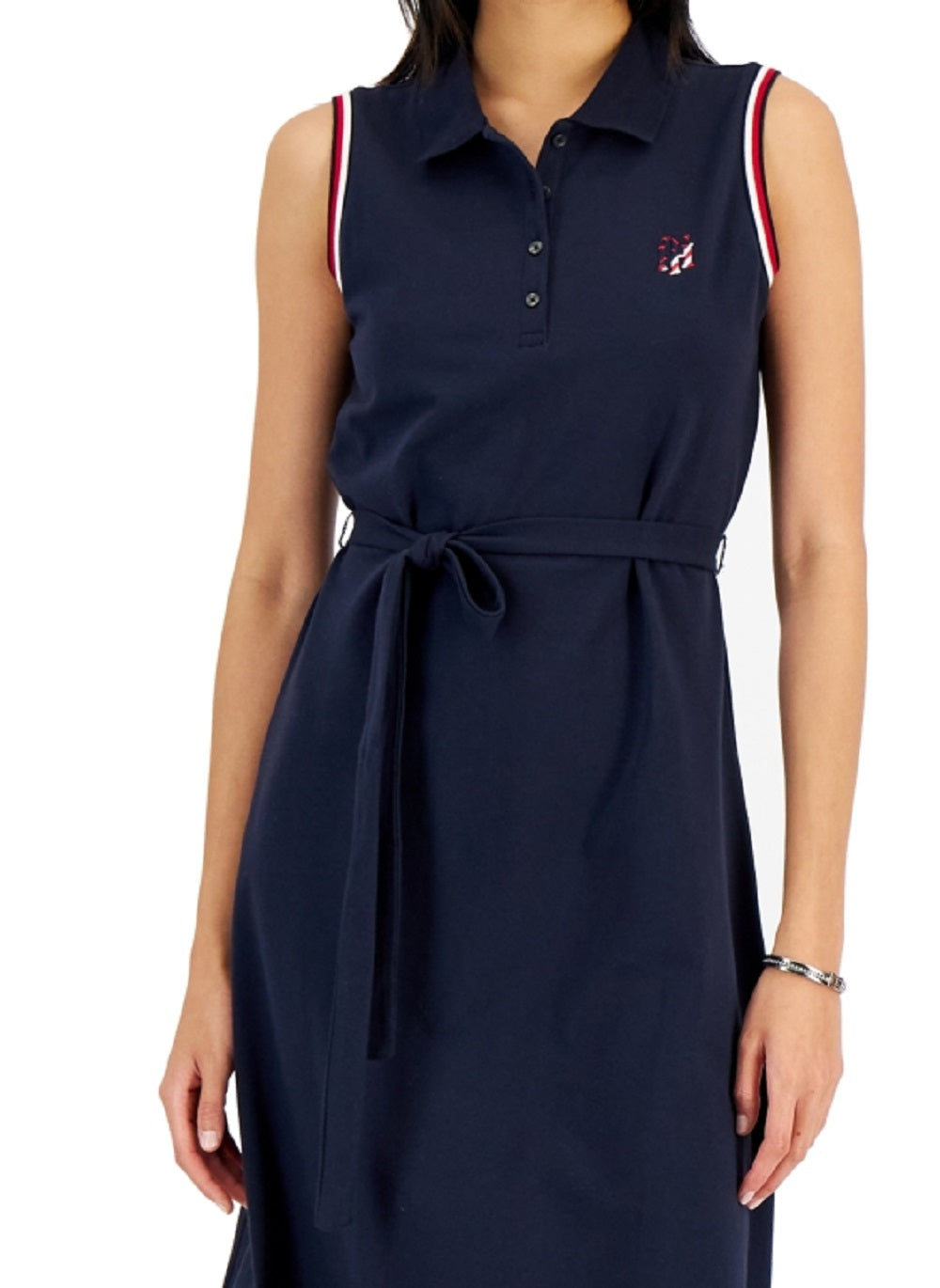 O estilo esportivo fica chique neste vestido polo flare da Tommy Hilfiger | com um cinto elegante para amarrar na cintura. | Gola pontuda | Fecho de botões na frente | Cinto para amarrar na cintura; acabamento contrastante nos punhos; detalhe bordado no peito | Sem forro | Algodão/elastano