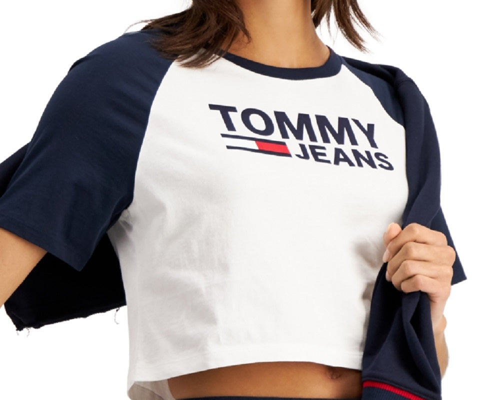 Camiseta Tommy Jeans Feminina Fused Logo Baseball Branca Tamanho Médio