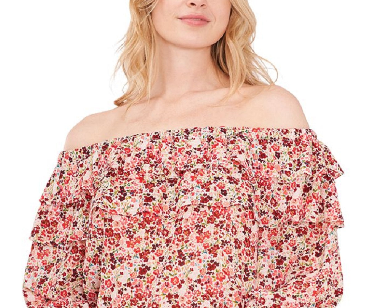 Vince Camuto Blusa feminina com estampa floral e ombro de fora, marrom, tamanho extragrande