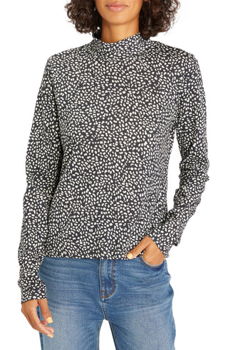 Camiseta feminina Sanctuary Perfect com estampa animal e gola alta, preta, tamanho médio