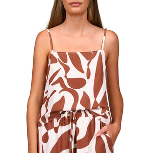 Blusa feminina Sanctuary com alças finas estampadas, marrom, tamanho médio