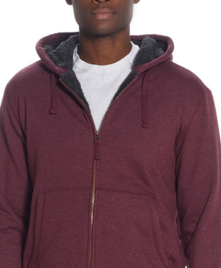 Moletom com capuz vintage masculino com zíper completo e forro de sherpa, vermelho, tamanho médio