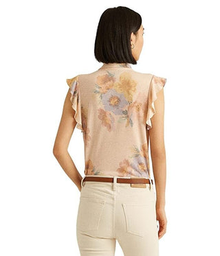 Blusa Ralph Lauren Feminina Floral Amarrada no Pescoço Marrom Tamanho Grande