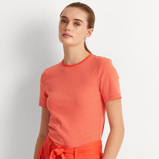 Camiseta Ralph Lauren Feminina Listrada de Algodão Elástico Laranja Tamanho Médio