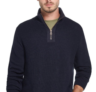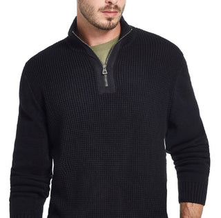 Suéter masculino vintage à prova de intempéries com textura waffle e zíper 1/4, preto, tamanho médio