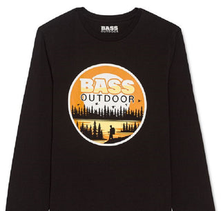 Camiseta masculina de manga comprida com estampa dourada Bass Outdoor, preta, tamanho médio