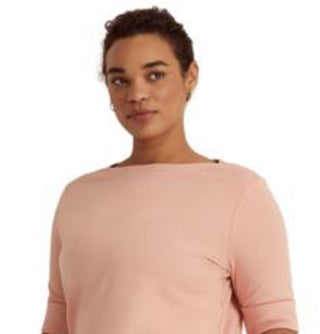 Blusa Ralph Lauren Feminina de Algodão Misto com Decote Canoa Rosa Tamanho 1X
