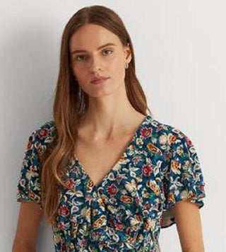 Blusa Ralph Lauren Feminina Floral Jersey Surplice Azul Tamanho X-G