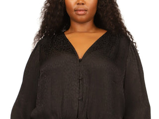 Blusa feminina Michael Kors com bainha jacquard e amarração, preta, tamanho 2X