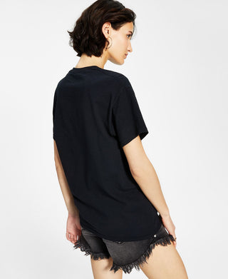 Camiseta feminina Junk Food Cotton Mustang com estampa gráfica, preta, tamanho extragrande