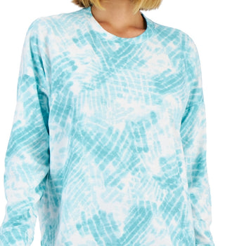 ID Ideology Blusa feminina com decote redondo e fenda tingida, azul, tamanho grande