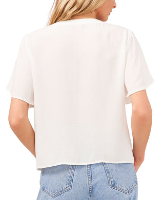 Blusa feminina Vince Camuto com botões frontais e bainha amarrada, branca, tamanho médio