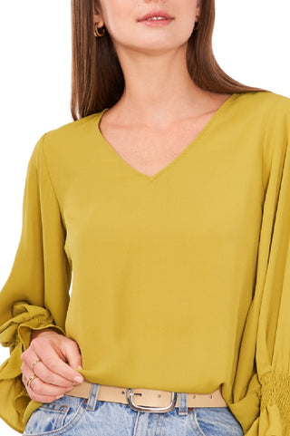 Vince Camuto Blusa feminina com manga sino, verde, tamanho grande