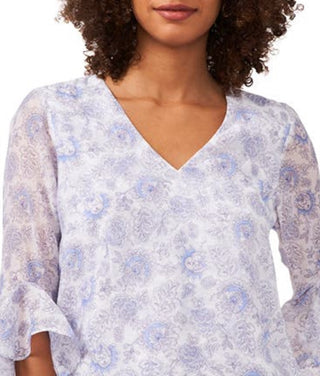 Blusa feminina Vince Camuto com estampa floral e mangas bufantes, branca, tamanho extragrande