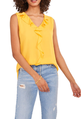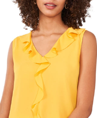 Blusa feminina Vince Camuto com decote em V e mangas bufantes, tamanho médio, amarela