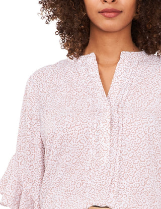 Blusa feminina Vince Camuto com estampa animal e mangas bufantes, marrom, tamanho grande