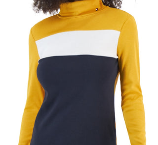 Tommy Hilfiger Blusa Feminina de Algodão com Gola Alta Colorblock e Manga Longa, Amarela, Tamanho X-G