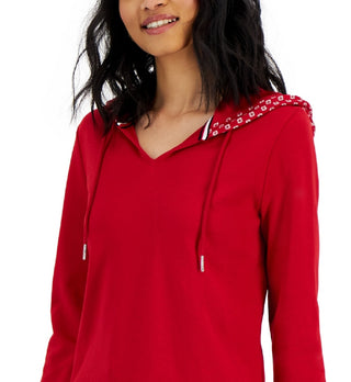 Tommy Hilfiger Blusa com capuz French Terry feminina em camadas, vermelha, tamanho médio