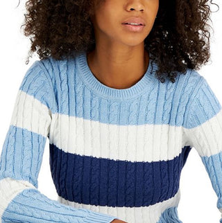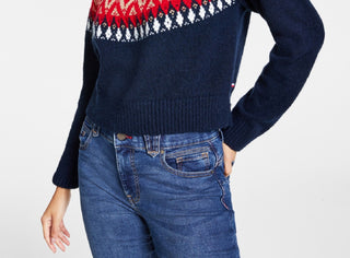 Tommy Hilfiger Suéter de malha de algodão com logo da bandeira feminino, em blocos de cores, azul, tamanho pequeno