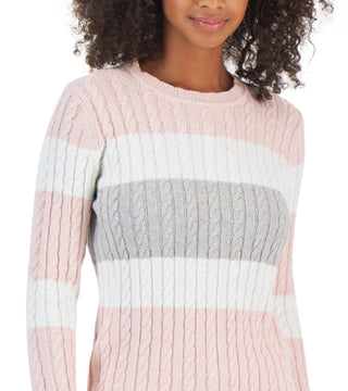 Tommy Hilfiger Suéter de malha de algodão com logo da bandeira feminino, colorblock, rosa, tamanho X-S