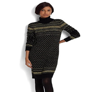 Vestido de malha Ralph Lauren Fair Isle gola alta feminino, preto, tamanho extragrande