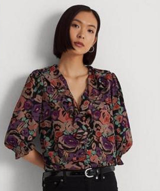 Blusa Ralph Lauren Feminina Floral Crepe Preta Tamanho X-G