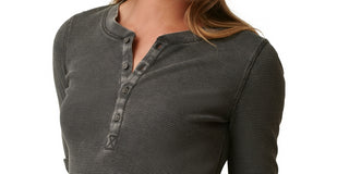 Blusa Henley de malha waffle com botões frontais Bass Outdoor feminina, cinza, tamanho pequeno
