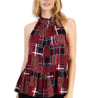 Tommy Hilfiger Top Feminino Xadrez Gola Alta Peplum Bainha Vermelho Tamanho X-G