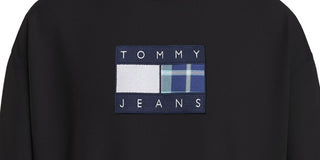 Tommy Hilfiger Moletom masculino com gola redonda e logo xadrez, ajuste relaxado, preto, tamanho médio