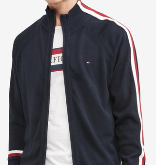 Tommy Hilfiger Suéter Masculino Global Stripe Intarsia com Zíper Completo Azul Tamanho Médio