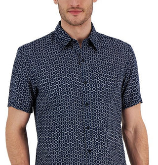 Camisa social masculina Michael Kors Slim Fit com estampa de linho, tamanho XXG, azul