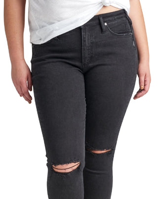Calça jeans skinny feminina mais procurada da Silver Jeans Co., preta, tamanho 18W
