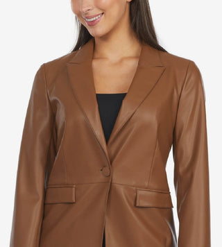 Blazer de couro feminino Laundry By Shelli Segal, marrom, tamanho médio