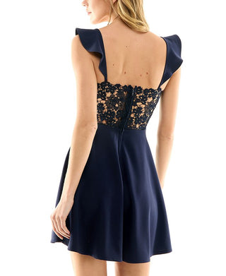 Vestido City Studios Junior's Deep Deep Neck Azul Tamanho 1