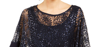 R & M Richards Top Feminino com Sobreposição de Lantejoulas Azul Tamanho Grande