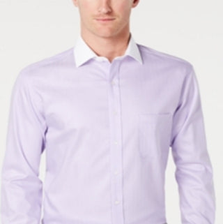 Camisa social masculina clássica Tasso Elba, corte regular, sem passar a ferro, com punho francês, roxa, tamanho 34x35