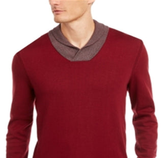 Suéter masculino Tasso Elba com gola xale contrastante e algodão Supima, vermelho, tamanho médio