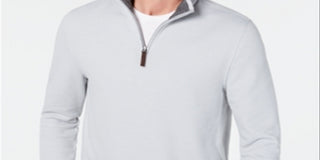 Suéter masculino Tasso Elba com zíper 1/4 cinza, tamanho médio