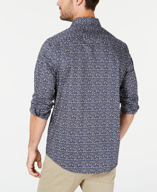 Camisa masculina American Rag com botões e gola trançada, azul, tamanho médio