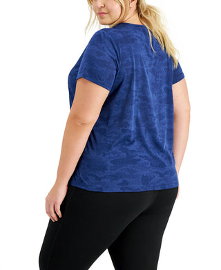 Camiseta feminina camuflada ID Ideology com estampa jacquard e absorção de umidade, azul, tamanho 4X