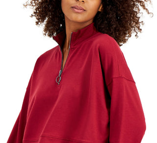 ID Ideology Top curto feminino com zíper de um quarto, vermelho, tamanho X-S