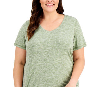 Camiseta feminina ID Ideology Rapidry com decote em V, verde, tamanho 1X