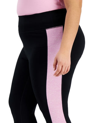 Leggings femininas ID Ideology com acabamento contrastante 7/8, pretas, tamanho extragrande