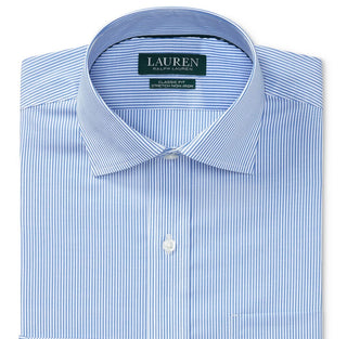 Camisa social listrada clássica Ralph Lauren masculina, tamanho 16,5, com ajuste regular e elástico, que não passa a ferro