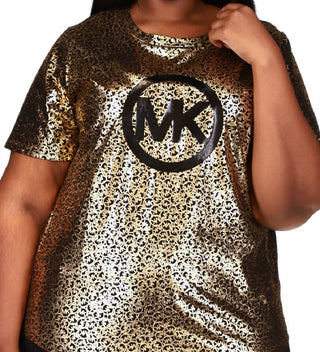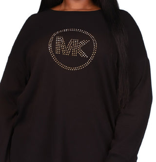 Camiseta feminina Michael Kors com estampa de logotipo metálico, preta, tamanho 2X